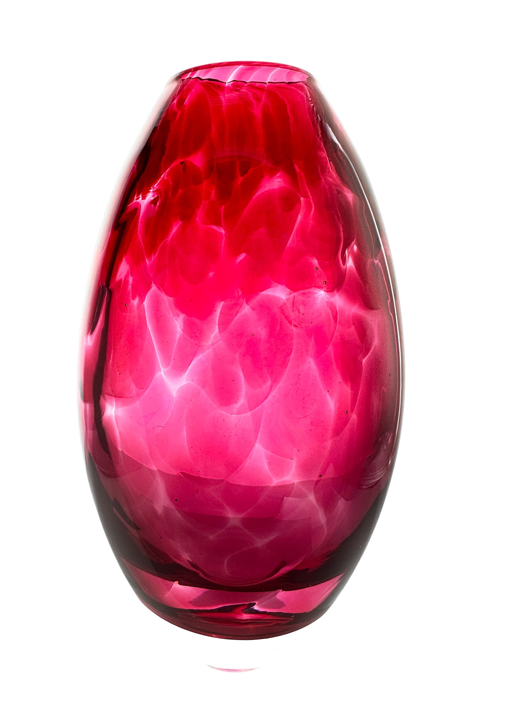 Gorgeous in jewel pink, this heavy teardrop vase incorporates a beautiful patterned effect, that appears like overlapping confetti, creating strokes of light and dark across the piece.