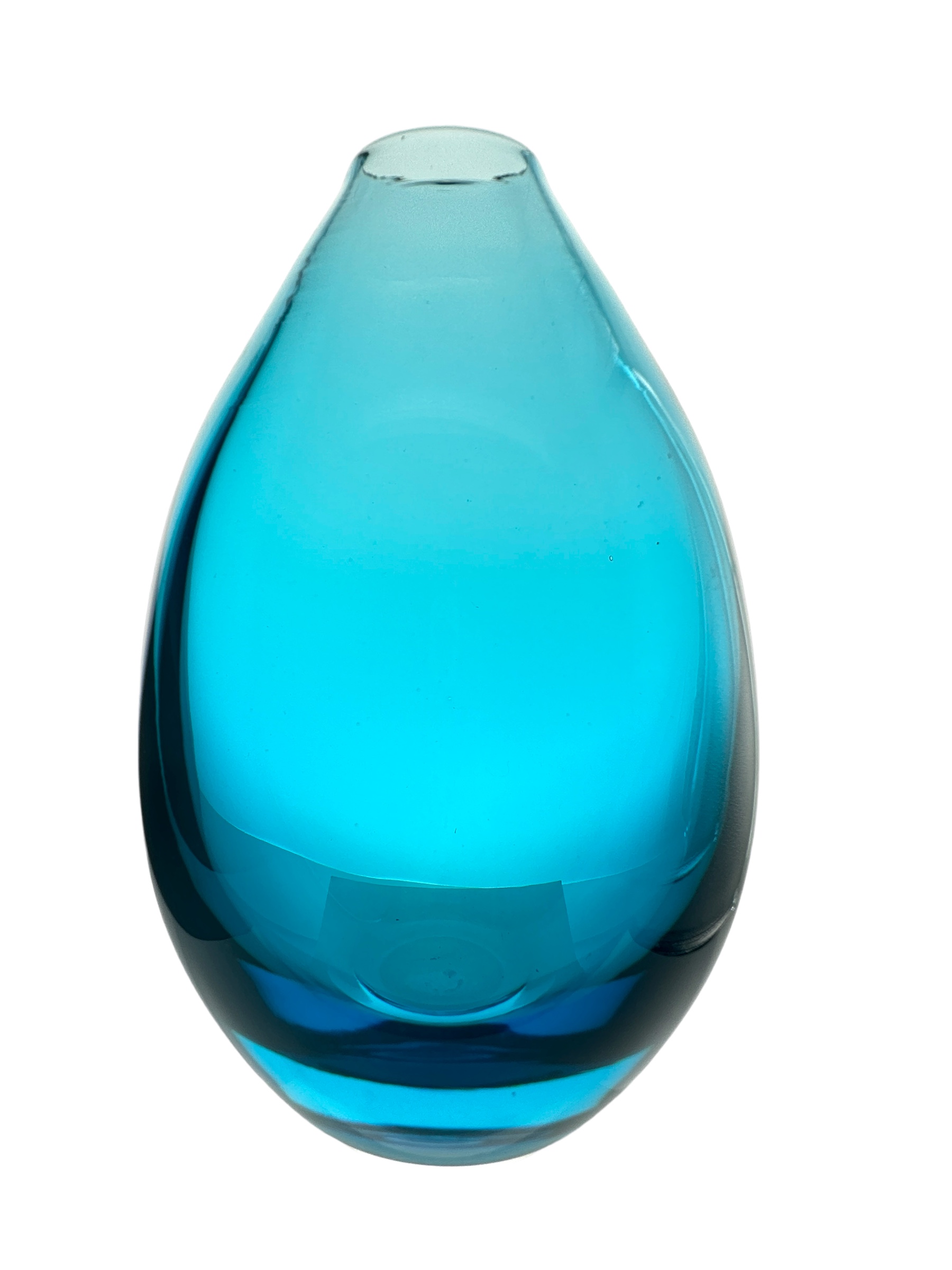 Beautiful in turquoise, this heavy teardrop vase is elegant in its simplicity.