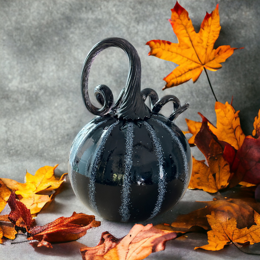 Our black pumpkin with black stem and white ridges is part of our Monochrome range. Perfect for contemporary decor and a unique addition to your homestyling.