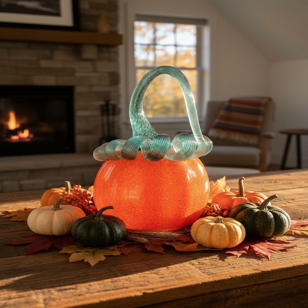 Sticking with tradition, our orange pumpkin sports our signature twisty silver green stem. Add it to your autumn decor collection and bring a great pop of colour to a dull day.